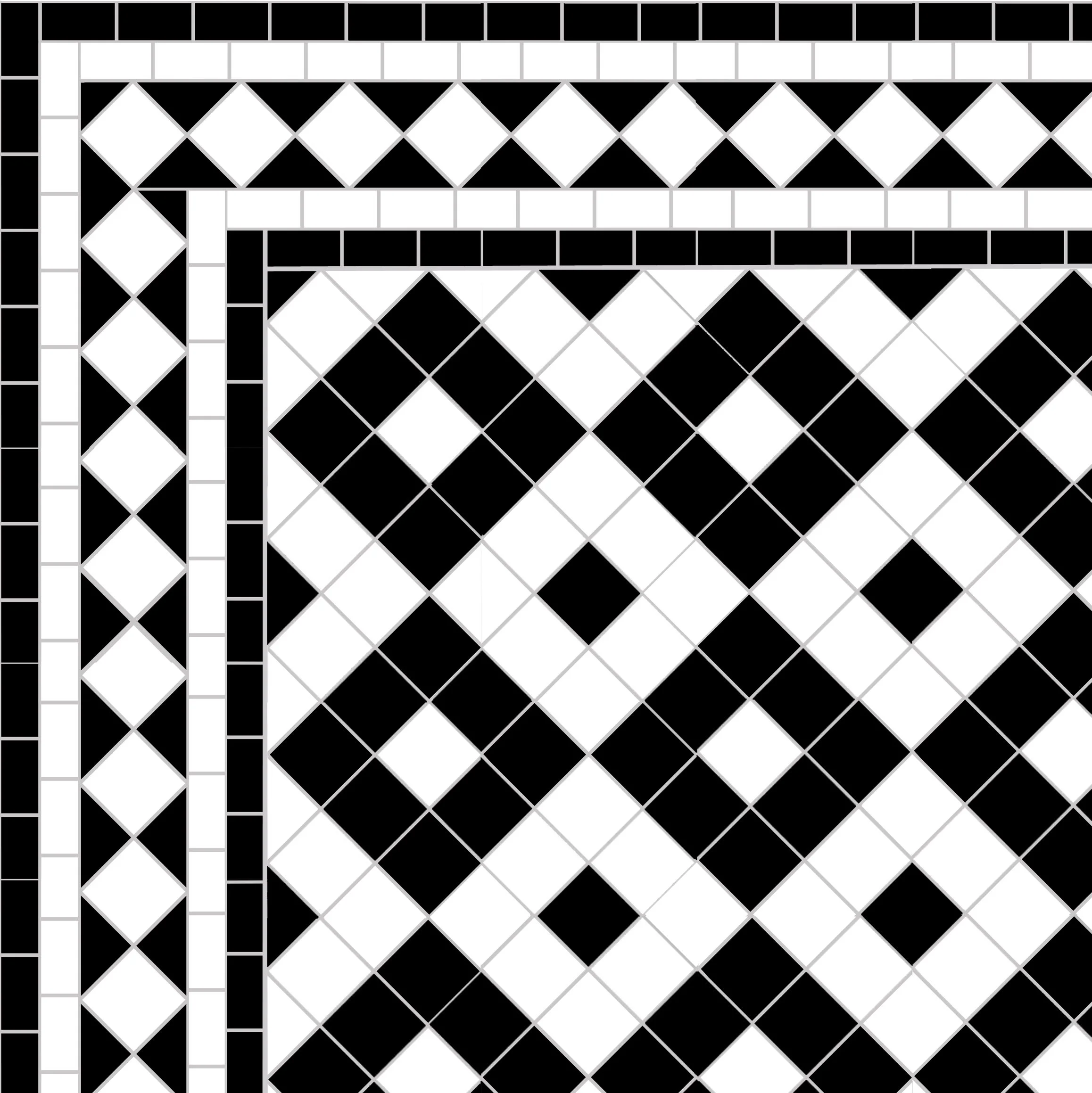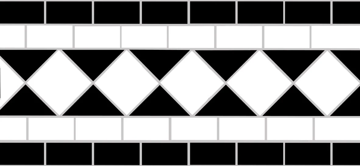 The outer black line is supplied as whole 5x5cm tiles so that the tiler can cut them to the required width on site.