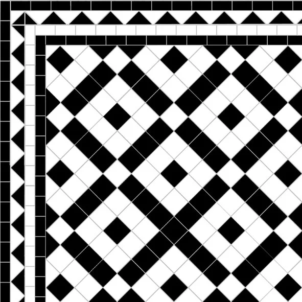 The outer black line is supplied as whole 5x5cm tiles so that the tiler can cut them to the required width on site.