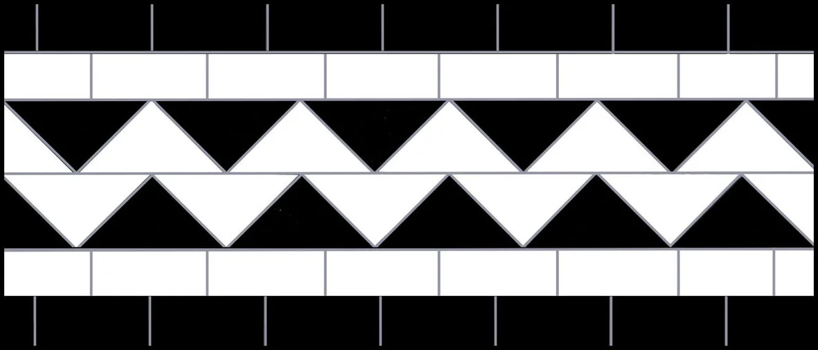 The outer black line is supplied as whole 5x5cm tiles so that the tiler can cut them to the required width on site.
