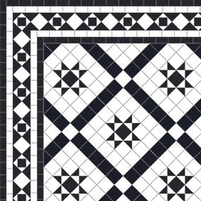 The outer black line is supplied as whole 5x5cm tiles so that the tiler can cut them to the required width on site.