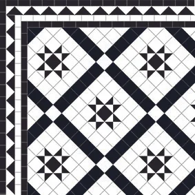The outer black line is supplied as whole 5x5cm tiles so that the tiler can cut them to the required width on site.