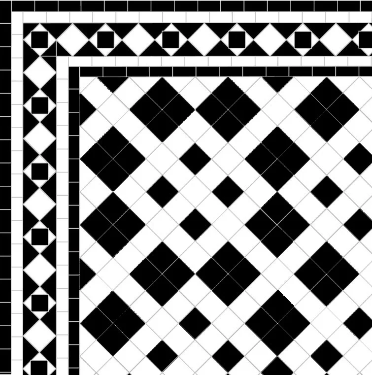 The outer black line is supplied as whole 5x5cm tiles so that the tiler can cut them to the required width on site.